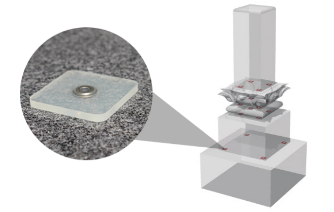 「ダブルクッションプレート」は、適度な荷重で変形し、墓石を安定して受けとめ、振動を分散して吸収することで墓石を守ります。